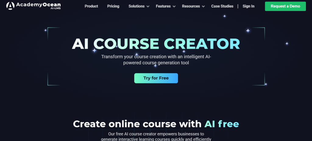 AcademyOcean ofrece un creador de cursos AI con plan gratuito para mini cursos.