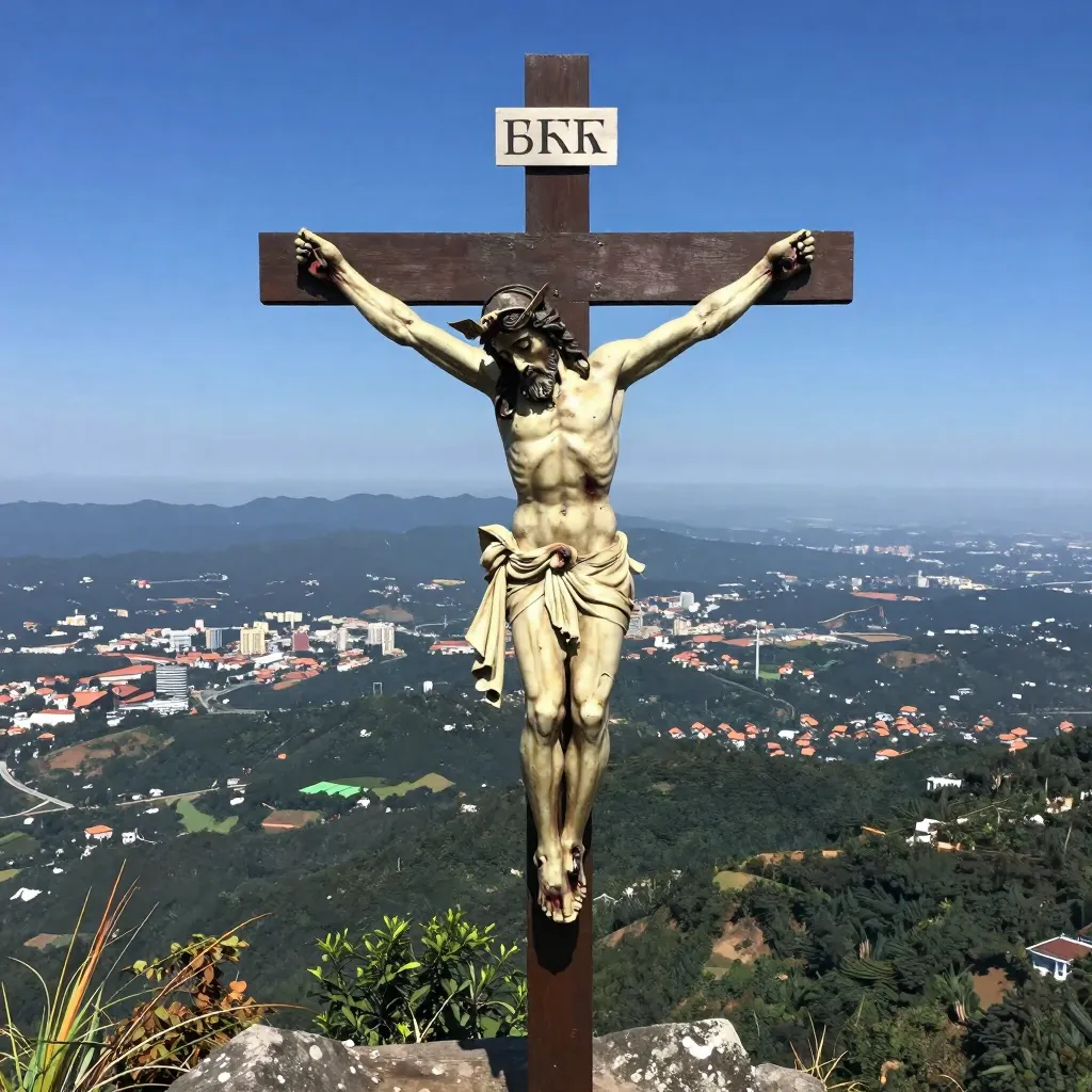3. Camino al Calvario: La corona de espinas, el sudario púrpura y los clavos son símbolos de la burla y el rechazo humano, pero también de la redención ofrecida al pecador arrepentido.