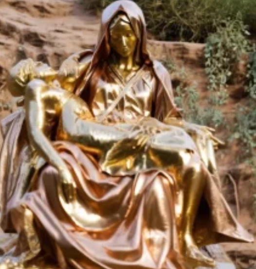 • Recomendación: Al usar imágenes generadas por IA, es buena práctica indicar que es una «reproducción artística generada por inteligencia artificial basada en La Piedad de Miguel Ángel».